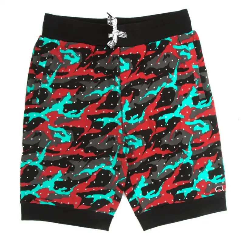 The Black Trukfit Camo W Squares Sweatshorts bring energy and edge. A bold camo base is topped with white polka dots for a standout mix. The black elastic waistband keeps the fit snug. A white drawstring with black pattern adds contrast.