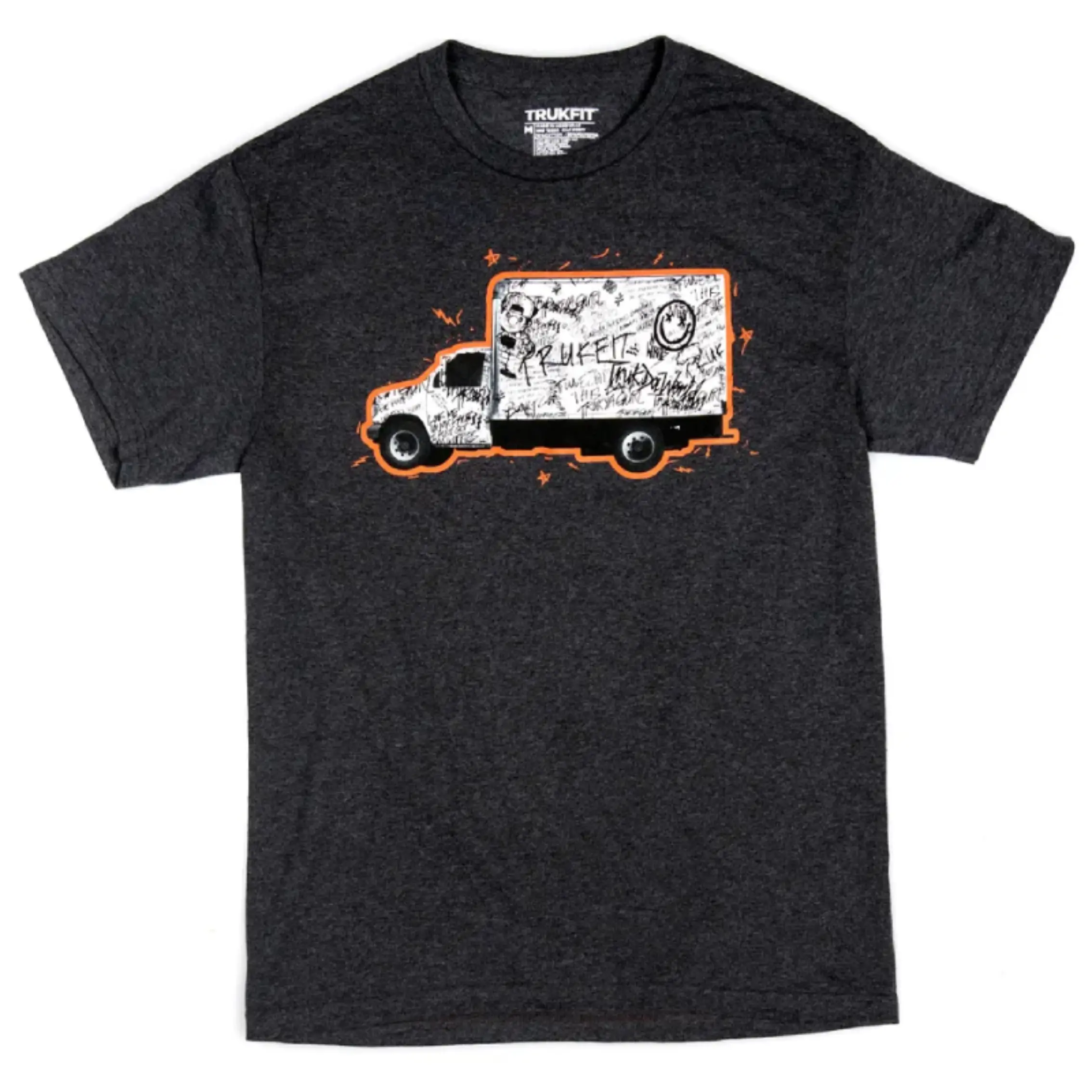The Charcoal Heather Trukfit Off Da Truk T-Shirt brings gritty style with a bold edge. Made in a dark grey heathered fabric, it’s soft, durable, and built to move. The front graphic features a scribble-style truck with sharp orange outlines—raw, loud, and full of energy.