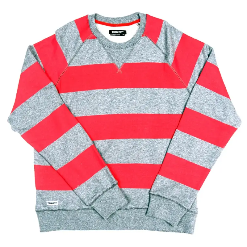 Grey/Red Truckfit Bold Stripes Crewneck Sweatshirt