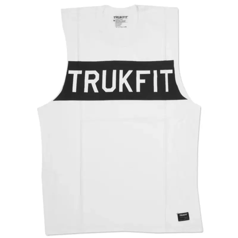 The White Trukfit 1 A Day Muscle Tank Top keeps it sharp and athletic. A bold black stripe runs across the chest with “TRUKFIT” stamped front and center. Sleeveless and cut from soft cotton, it’s lightweight, breathable, and made for movement.